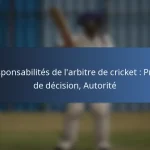 Les arbitres de cricket ont des responsabilités essentielles qui incluent la supervision du match, l’application des règles et la prise de décisions cruciales qui influencent l’issue du jeu. Leur autorité est cruciale pour maintenir l’intégrité du sport, en particulier lors des moments difficiles, car ils s’appuient sur une observation attentive et des règlements établis pour […]